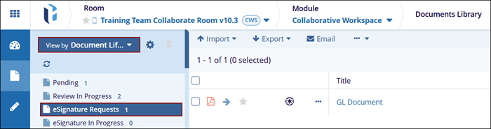 - Navigate to the Documents Library modal, and set the view to Document Life Cycle.