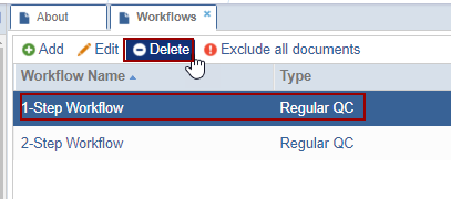 Deleting an existing workflow will result in the removal of any related status from documents previously processed as a part of the deleted workflow.