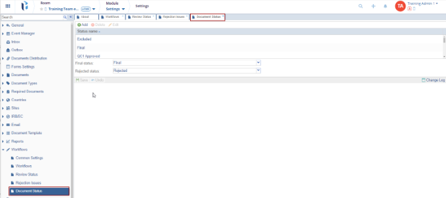 - The Final Status and the Rejected Status fields display the status that the user wants to associate.