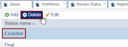 - Click on the Delete button to delete the selected status name.