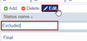 - Select the Status name and click Edit. The selected field gets editable.