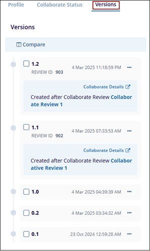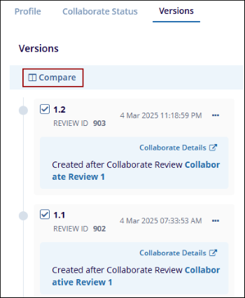 All edits, regardless of method, are tracked as part of a document’s history. Versions of the document can be viewed and compared in the Versions tab of the Metadata panel.