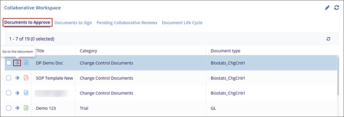To access the documents to approve, select the document and click on the arrow to open the documents in the document view.