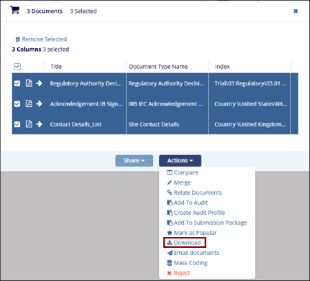 - Add the required documents to the Documents Cart and click the arrow next to it to open the Documents Cart window.