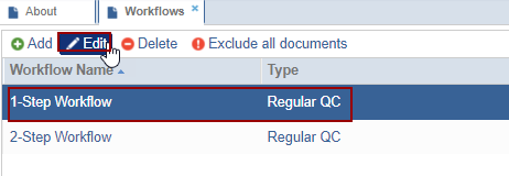 - Click the Edit button the Workflow Editor pop-up window is displayed.