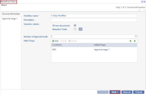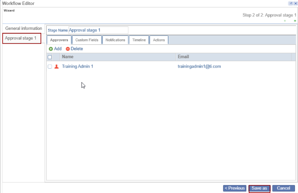 - Edit the required fields and click Save As to save the workflow under a new name.