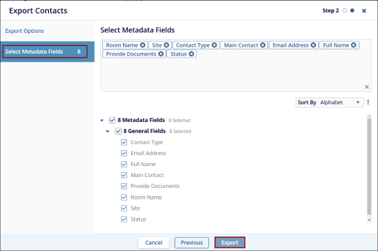 If no contacts are selected, the Selected records radio button will be grayed out.