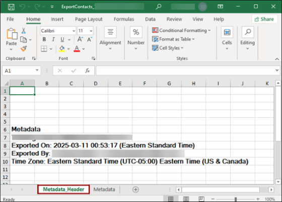 - Click on the Metadata tab, to view the contact details and the metadata.