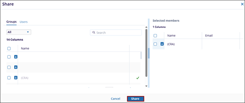 - Select the Users / Groups by accessing the respective sections and add them to the Selected member’s section.