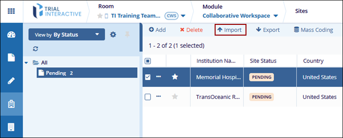 To import sites from the Collaborative Workspace module, follow the steps below.