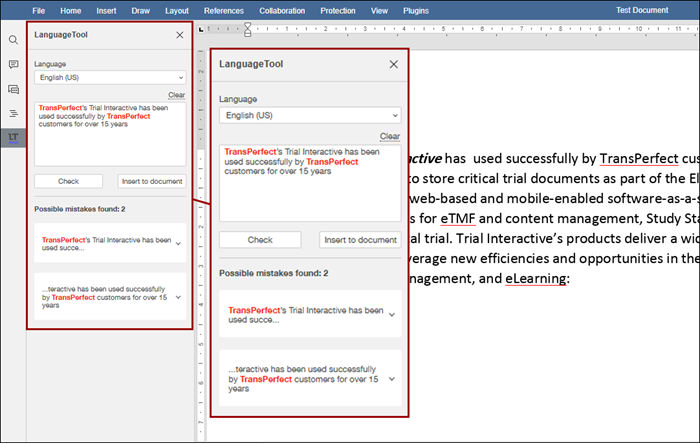 The LanguageTool plugin for OnlyOffice provides advanced grammar, style, and spell-checking capabilities in multiple languages. It helps users improve the quality of their writing by identifying errors and suggesting corrections directly to the editor, ensuring polished and professional documents with ease.