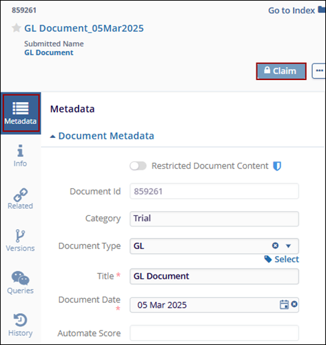 To locate and claim a document in an administrative workflow, follow the steps below.