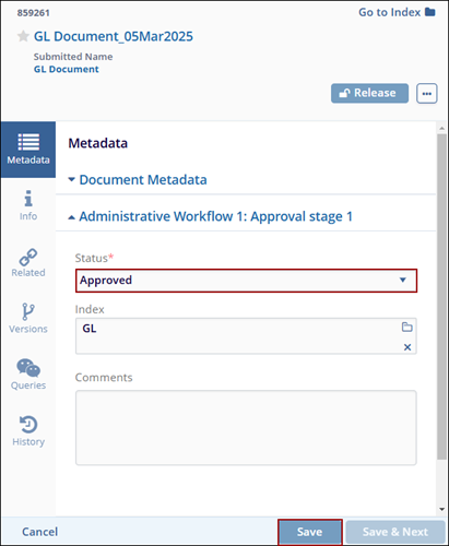 - Navigate to the Documents Library modal, and set the view to Document Life Cycle.