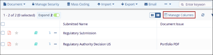 Users can configure which columns are displayed in the Document Grid irrespective of the Card or Grid View selected. This function is not limited to the Documents library module and any grid in the system can be configured to the users’ preferences.