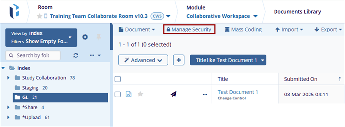 - Click Manage Security from the top ribbon bar. The Manage Security window