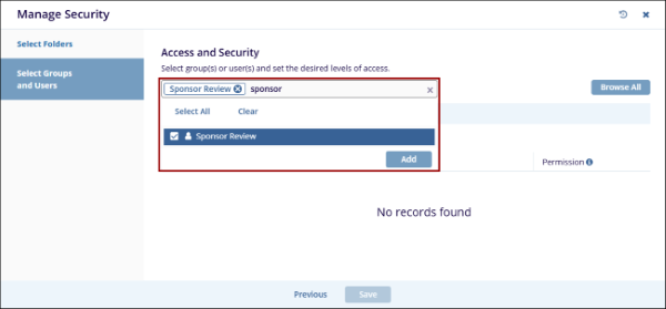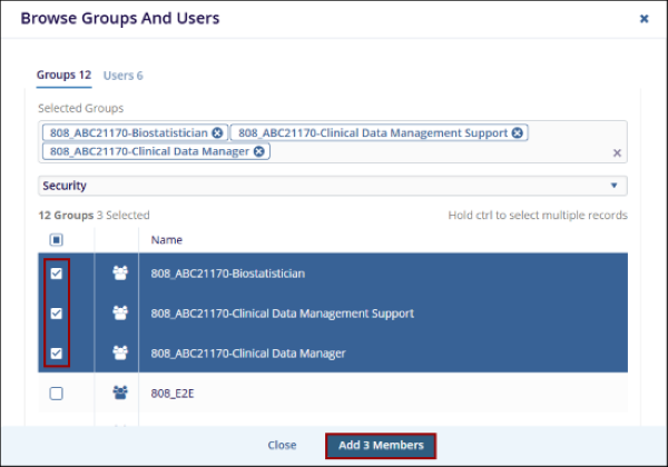 - Enter a keyword related to the users or groups, select the required groups and