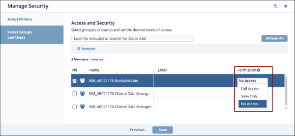 Once the required groups and users are added, click on the Permissions dropdown and provide the necessary permissions.