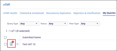 - In the eTMF dashlet, and select the My Queries tab.