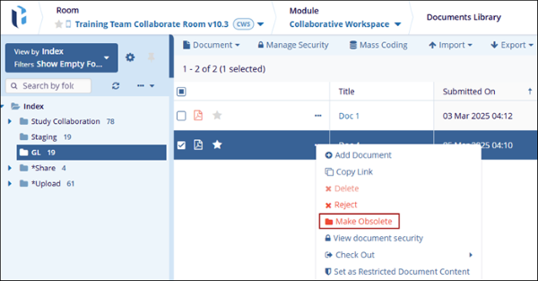 To mark a document as obsolete, follow the steps below.