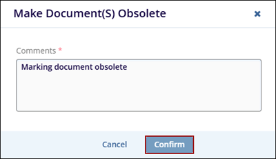 - On the Make Document(s) Obsolete popup, mandatorily enter a comment and click on the