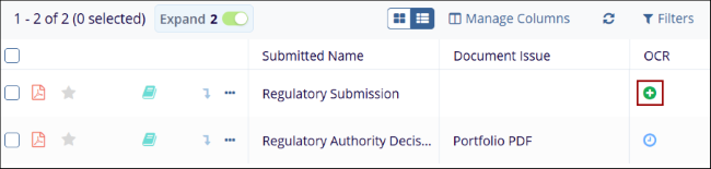 - Once OCR is successfully reverted, the OCR column within the documents grid