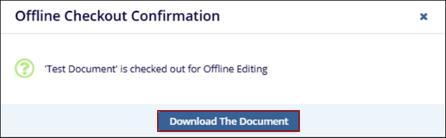 This option offers the user a chance to download the document to their computer. The user will then make any changes required using their preferred, locally installed software and upload an updated copy to the Collaborate room. When checking out a document offline, the document is immediately locked, and the system prompts the user to (optionally) download the document.