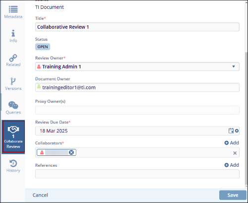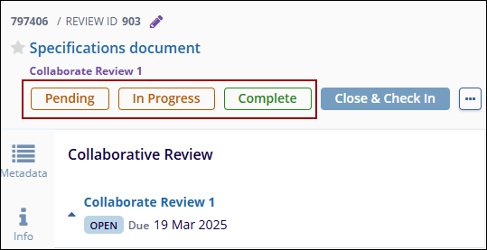 - Navigate to the documents metadata panel and select the Collaborate Review tab.