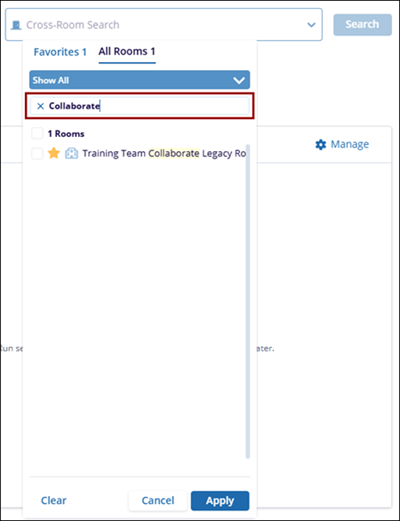 Click Cancel to close the Cross-Room Search without applying any changes.