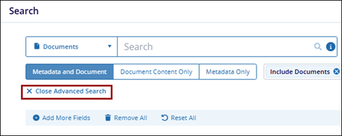 - Click the Close Advanced Search option once the desired criteria are entered,