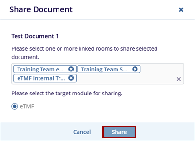 With the Share Document functionality, users can share a document to other rooms assigned them.