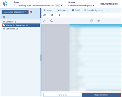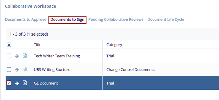 - Navigate to the Documents to Sign tab within the Collaborative Workspace dashlet.