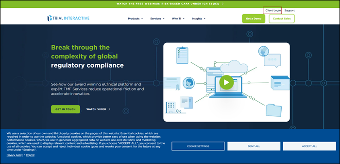 Follow the steps below to log in with Trial Interactive:- Using your preferred internet browser, navigate to https://www.trialinteractive.com/