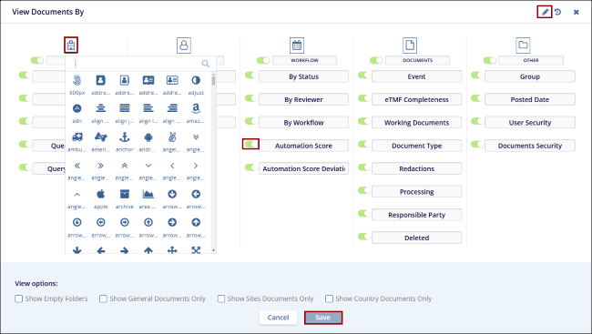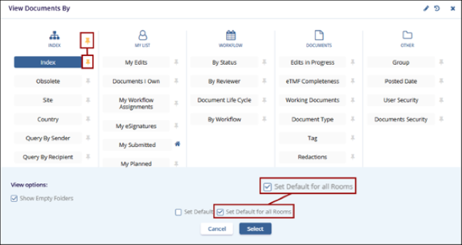 - By Status: Groups documents by their Change Control and Administrative QC Workflow Assignments.