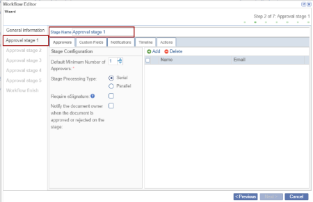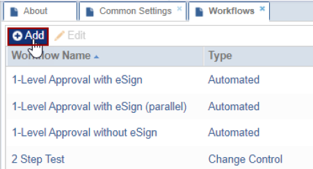 - Click the Add button from the grid. The Workflow Editor window will open.