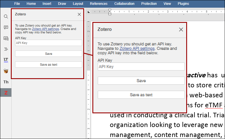 Zotero is a free, open-source reference management tool designed to act as the personal research assistant. It helps you collect, organize, cite, and share research sources with ease. The Zotero plugin for OnlyOffice integrates this powerful tool directly into the document editor, enabling seamless management of references while working on documents. With Zotero, users can save references from library catalogs, research databases and websites. Additionally, users can add PDFs, images, audio and video files, snapshots of webpages, and write annotations and attach them to the citations. Users can also create bibliographies using a wide range of major citation styles.