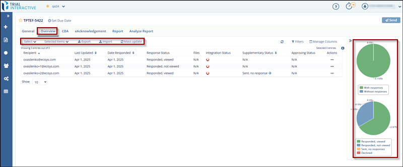 - Responses Pie Chart – Shown on the right side of the page.
