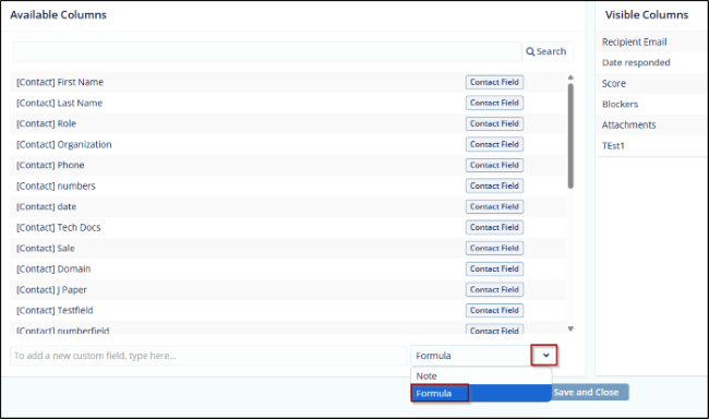 - Enter the custom field name in the textbox and select Formula form the dropdown. A