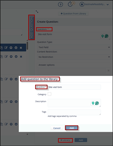 - To add the question to the library directly from the Create Question section, click the Library button located at the bottom center of the screen.