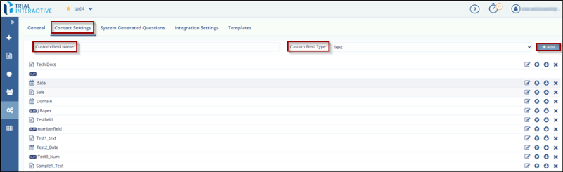 Contact Settings tab allow you to define custom contact fields that can be used to map form questions to contact information when creating a new form. These fields can also be mapped when importing a new or existing survey from a source file.