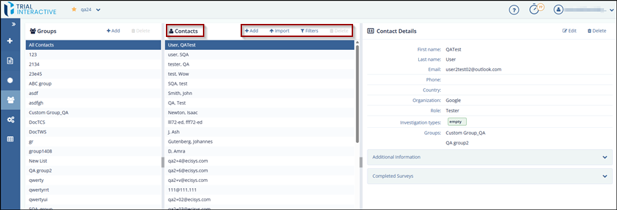This section guides the user to Add, Import, Edit, and apply Filters contacts in a group.