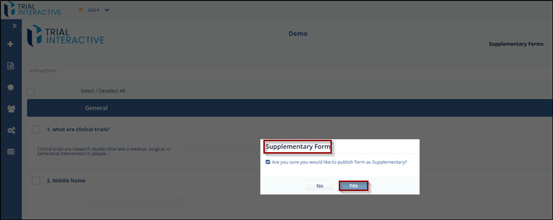 - Supplementary Form pop-up window. Click Yes in the Supplementary Form