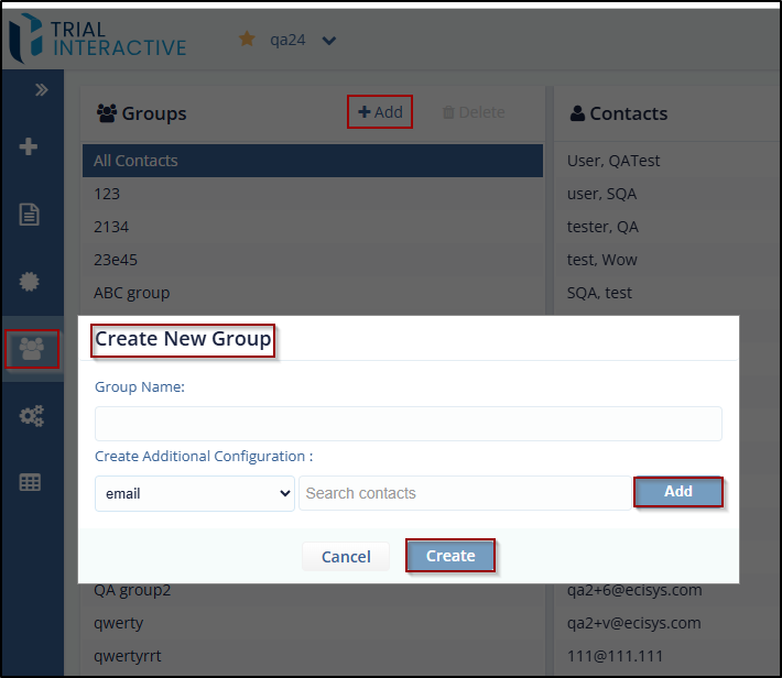 - Click Create and click the required Group view the added contacts to the