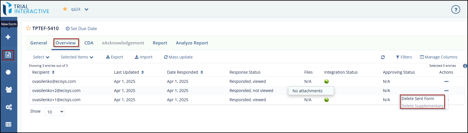 - Delete Sent Form