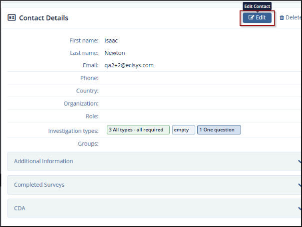 - Click the Edit button in the top right corner of Contact Details section.