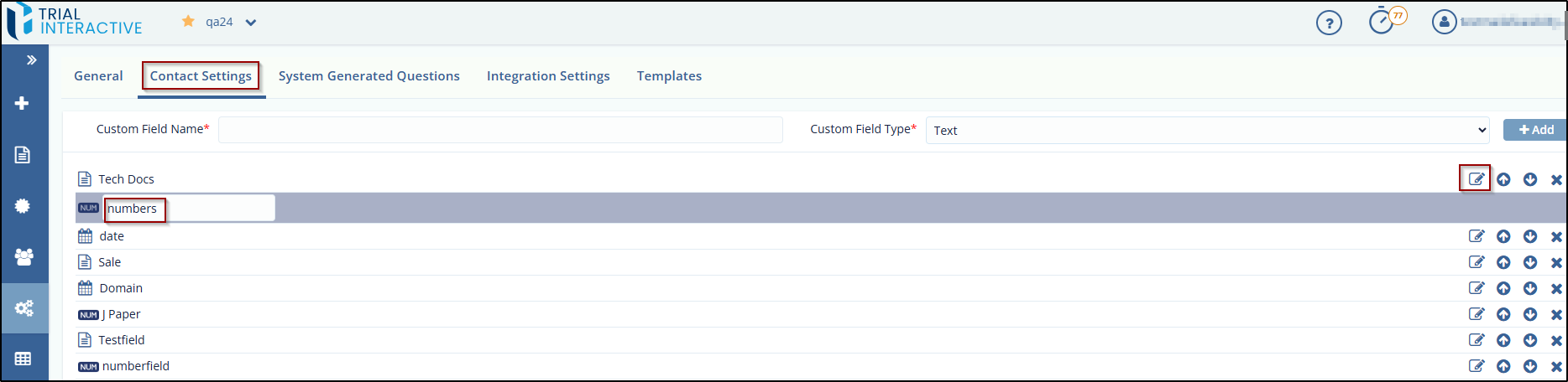 - Click the Edit icon next to the field to edit the Custom Field Name to make it editable.