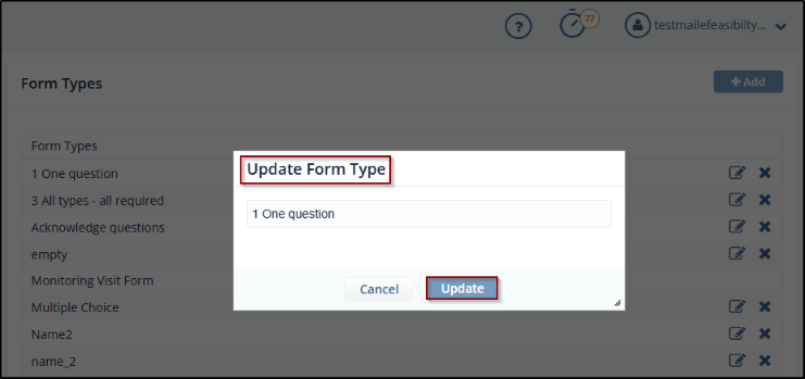 - To update an existing category, click the Edit icon next to the category name. The Update Question Category dialog box opens.