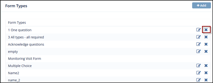 - Enter the Form Type and then click Add to add the Form Type to the list.
