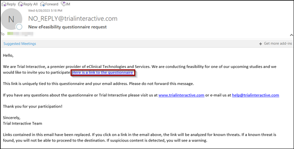 The Manager sends a survey to the submitter via an email link. When the submitter clicks the link, the form opens in their browser. Below is an example of a survey email.
