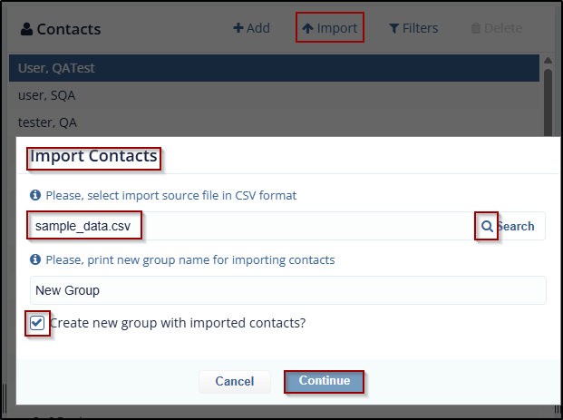 - The Create New Group with imported contacts? checkbox allows you to create new group and import contacts simultaneously in the group.