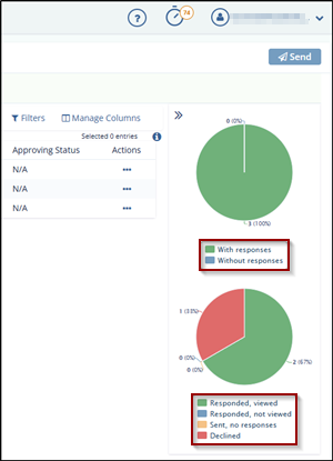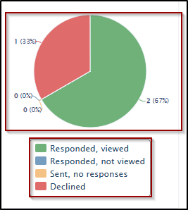 Clicking a section of the pie chart detaches it and displays a table listing the forms corresponding to that response status.